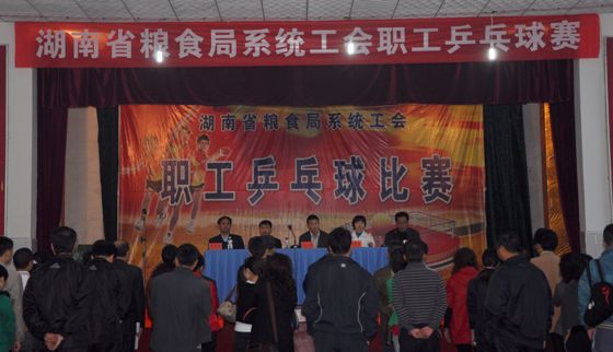 2010年11月12日局直系统乒乓球比赛在省经贸技校隆重举行,在全体运动员、裁判员和工作人员的共同努力下,经过一天紧张激烈的比赛,取得了圆满成功。局党组成员、副局长石少龙同志参加开幕式并为获奖选手颁奖。