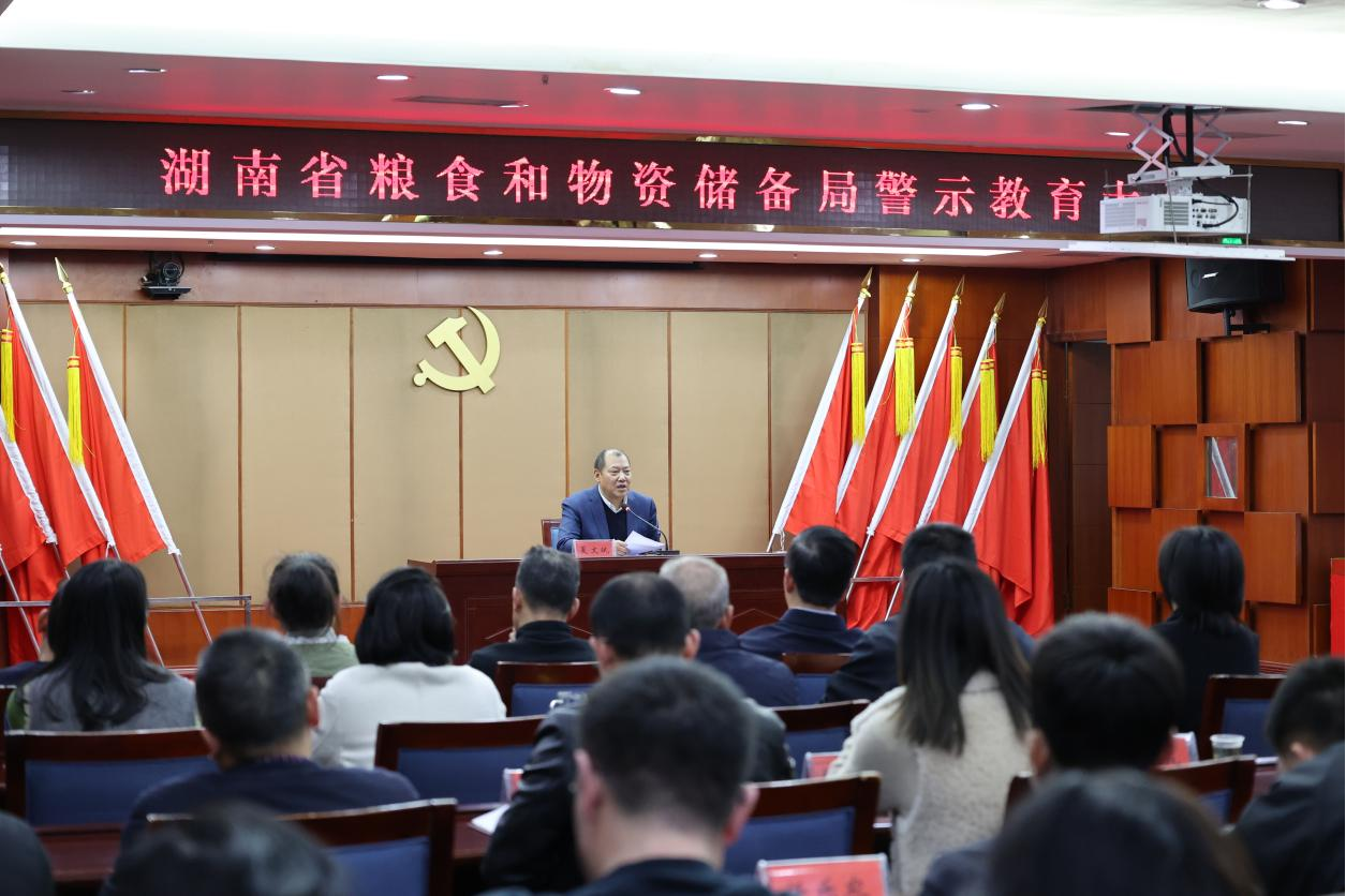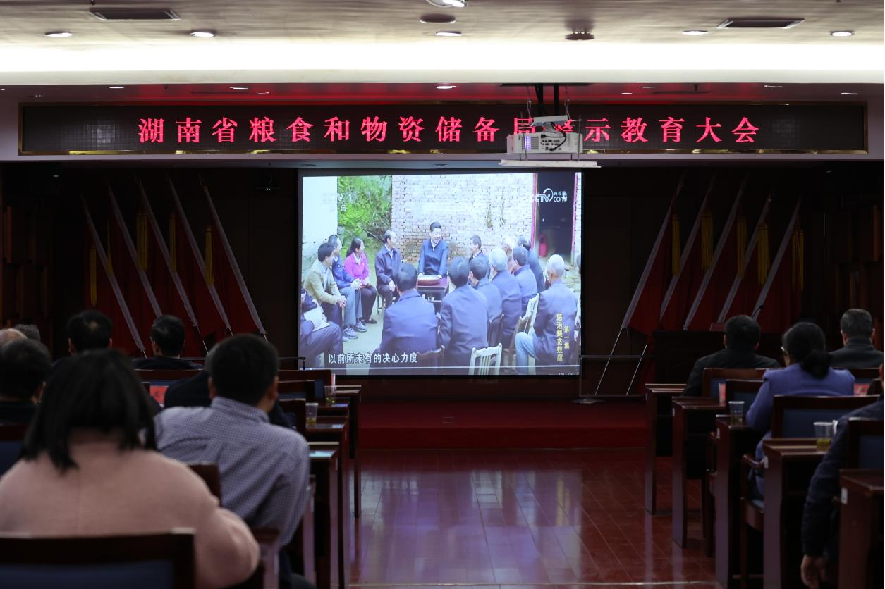 以案为鉴,警钟长鸣。1月8日,省局召开警示教育大会,组织全体干部职工集中观看中纪委警示教育专题片《反腐为了人民》,进一步教育和警示干部职工吸取教训、引以为戒,做到知敬畏、存戒惧、守底线,永葆清正廉洁的政治本色。省发展改革委党组成员,省粮食和物资储备局党组书记、局长夏文斌主持会议并讲话。局领导,局机关全体干部、驻楼局直单位全体干部职工参加。