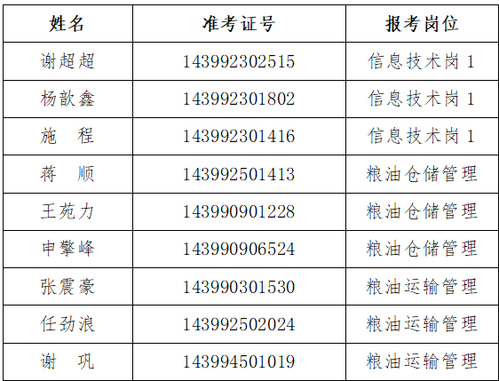 三、面试人员名单