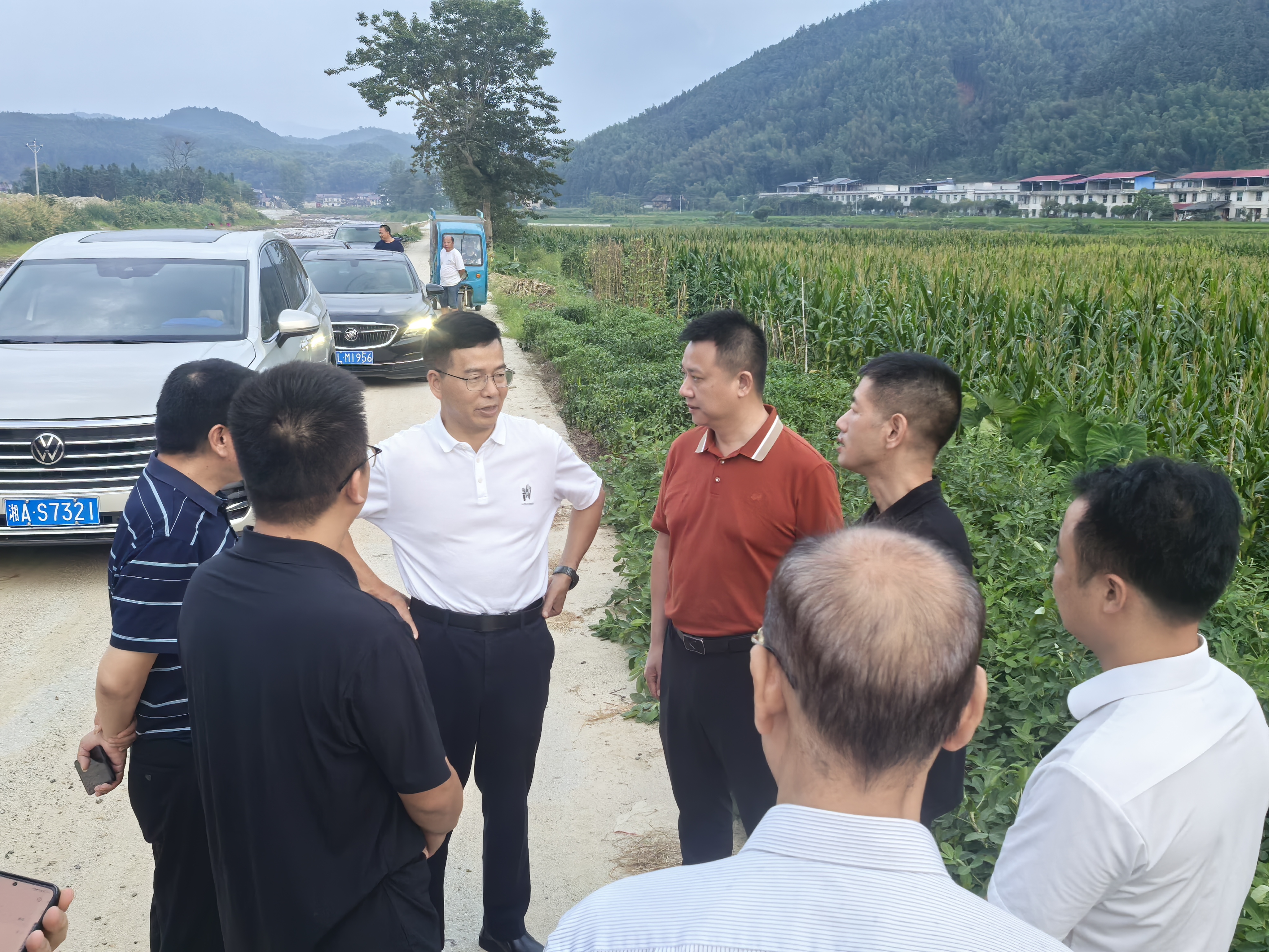 7月24日,省粮食和物资储备局党组成员、副局长覃世民带队到资兴市八面山瑶族乡豪园村调研指导灾后重建恢复粮食安全保障能力工作。