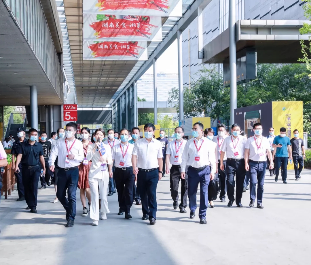 9月11日上午,湖南省人民政府副省长何报翔前来视察2021(第六届)中国国际食品餐饮博览会(以下简称“食餐会”),省人民政府副秘书长陈献春、商务部流通产业促进中心副主任安宝军、省商务厅副厅长杨中万、长沙市人民政府副市长刘拥兵、三湘集团董事长刘胜辉、长沙市人民政府副秘书长刘汇等组委会有关负责同志陪同视察。